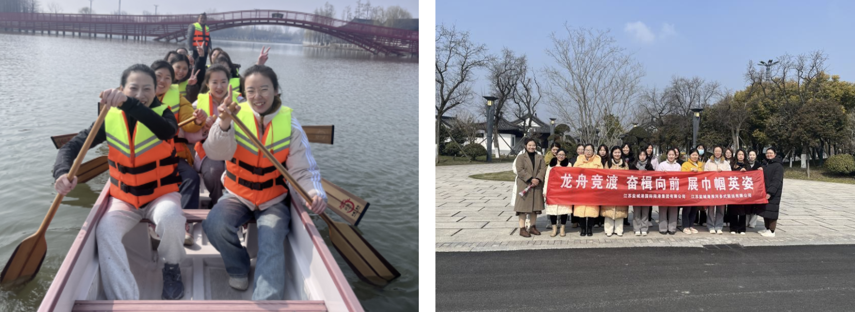“一、二、一、二……”伴随着密集的鼓声与整齐划一的口号声,活动正式开始。两支龙舟如离弦之箭,劈波斩浪、奋勇争先。飞溅而起的河水拍打在选手们的身上,却丝毫不减她们的斗志,碧波、龙舟在美丽的湖面上交织出一幅美丽动人的画面。