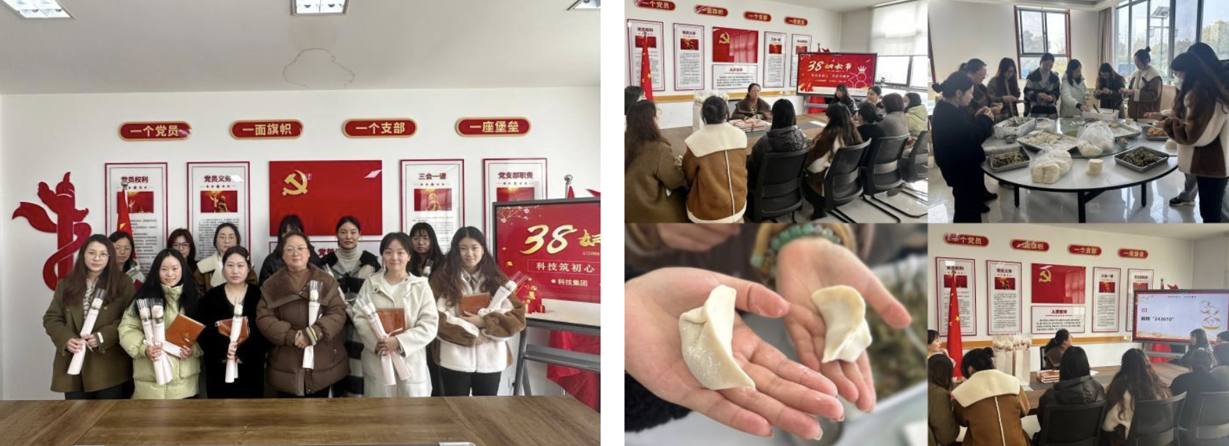 科技集团立足“科技筑初心、共话巾帼梦”主题,精心策划、用心组织,分别开展了知识快竞答、花样包水饺、赠花送祝福活动。以花之名、赠尔余香,祝福她们的工作生活能够像鲜花一样绽放。