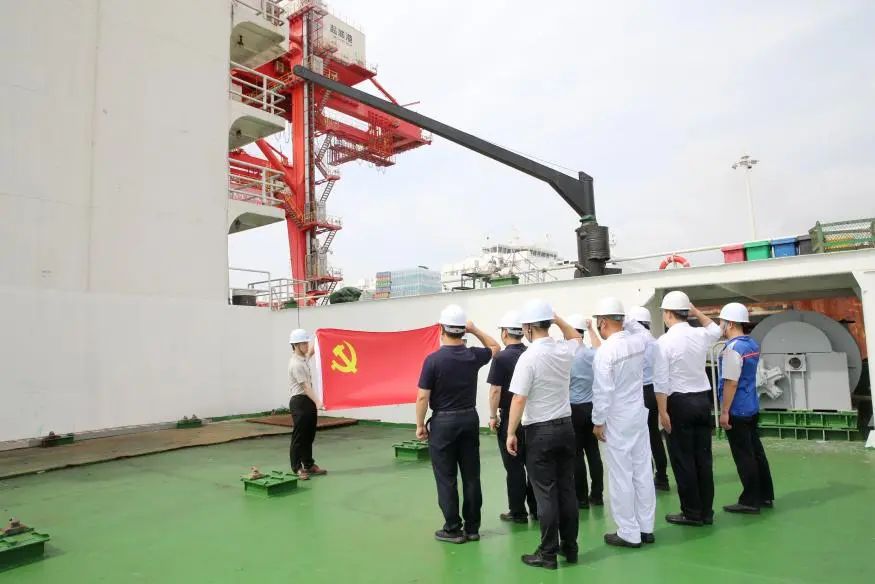 始终坚持党建领航不动摇,做好“把红旗插在航线上”这篇大文章,针对部分党员长期离岸在船航行的特殊情况,建立“基层党建工作在船上”机制,在航运集团自有船舶上建立党建文化墙,不断擦亮“海河之窗·党旗飘扬”党建品牌,切实做到船舶航行到哪里,党旗就插在哪里,党建工作就覆盖到哪里。