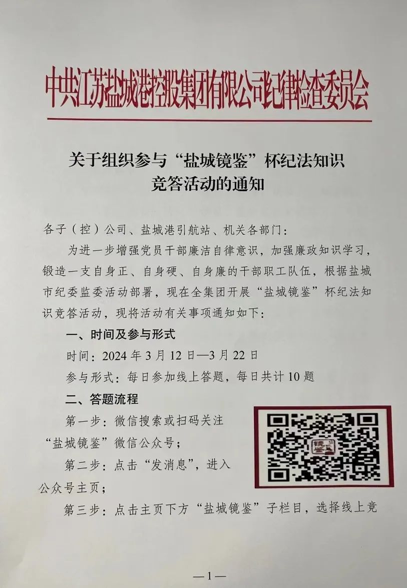 (组织开展“盐城镜鉴”杯纪法知识竞答活动)
