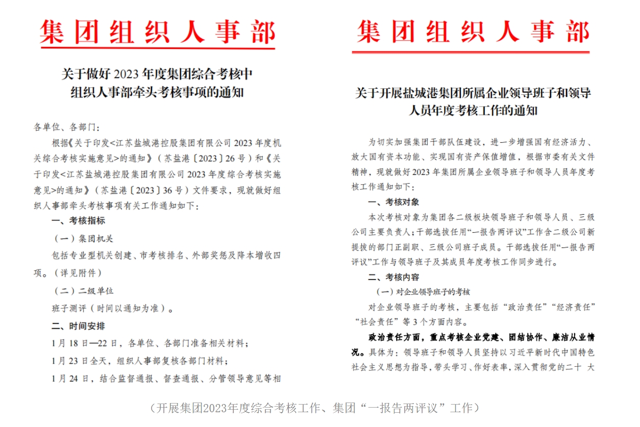 开展集团2023年度综合考核工作、集团“一报告两评议”工作,切实加强集团干部队伍建设,发挥考核“指挥棒”作用,努力以精准的考核助力集团各项工作高质量融合发展。