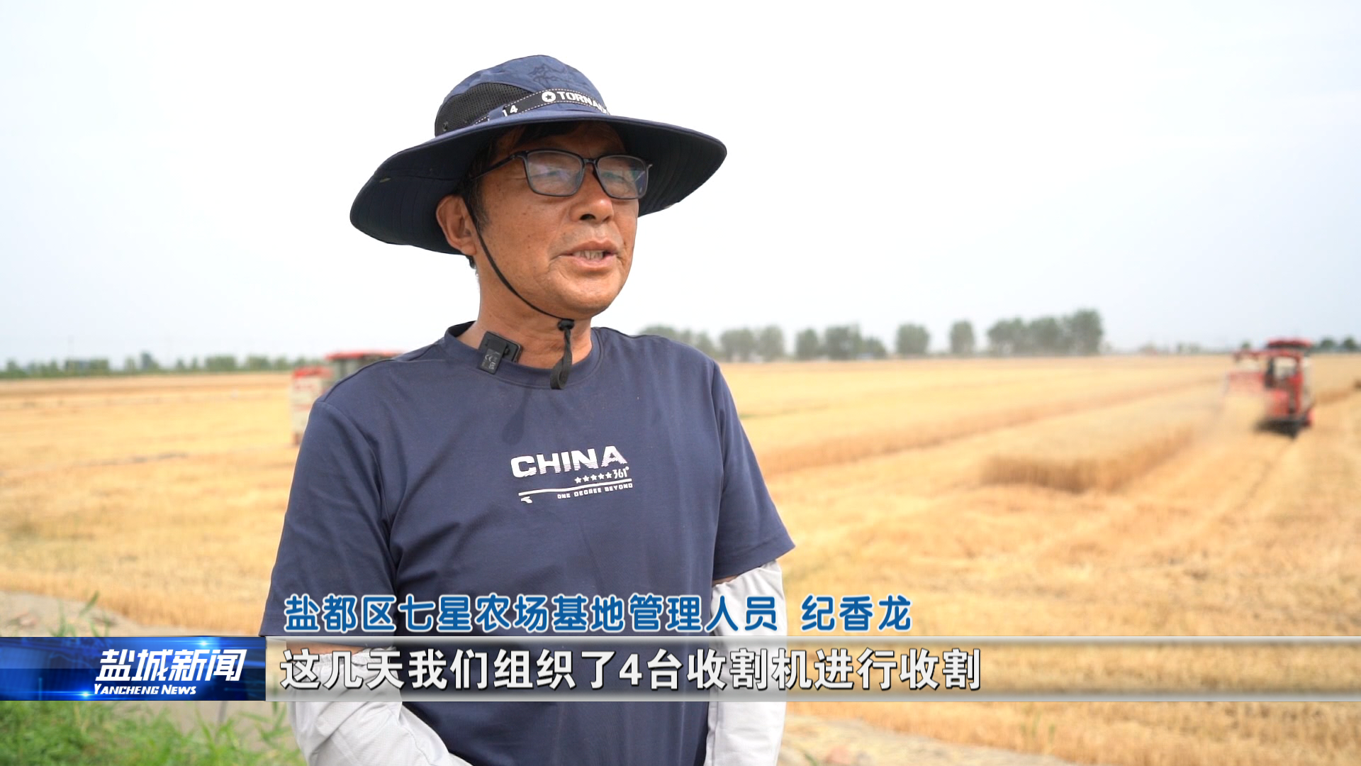 风吹麦浪,夏收启幕。据农情调度,今年全市夏粮种植面积675.6万亩,其中小麦640.9万亩、大麦21.2万亩、二豆13.5万亩,另有油菜种植面积61.6万亩,夏收工作时间紧、任务重。在盐都区七星农场基地的麦田地里,四台大型收割机械在麦田里来回穿梭,田野里饱满的麦穗随风摇摆,处处洋溢着丰收的景象。农场管理人员告诉记者,今年农场试验田内种植小麦1300亩,主要种植的品种为盐城市盐都区农科所选育的盐麦5号,好品种、好管理加上好天气,今年又是一个丰产、丰收年。
