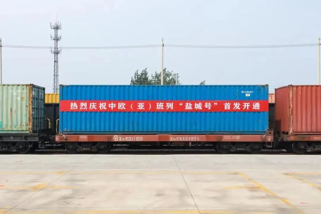 ——2023年7月,盐城中欧(亚)接续班列首趟运载稀有金属回程班列顺利抵达,成功打通进出口双向通道,班列业务独立行走运营。