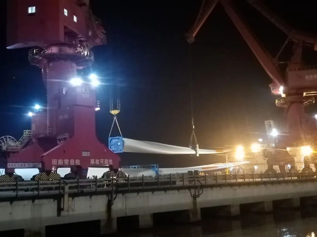据悉,此次叶片出口项目是远景能源出口至印度坎德拉港EN-156项目的第5船,装载量达到20套60片,射阳港区风电公司与业主单位反复沟通并根据码头实际情况,连续攻克堆码数据验证、作业中双机联动半径实验与集港运输数据可行性验证等技术壁垒,确保作业方案科学有序。