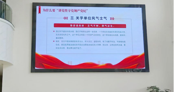 严格规矩意识。定期开展纪律规矩专题教育,深刻剖析典型案例,以案为鉴敲响廉洁警钟;将办公走廊打造成“廉政文化长廊”;开辟融思想性、政策性、观赏性、教育性于一体的廉政宣传阵地,让廉洁文化入脑入心更促行。