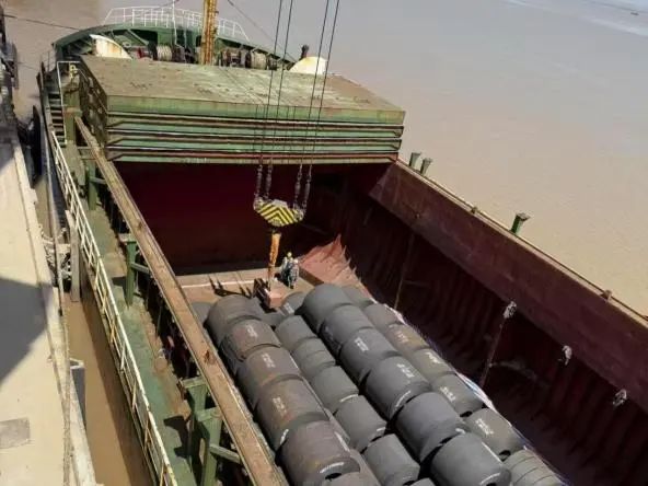 针对钢卷装卸特性,港区优化全流程跟踪服务模式。科学规划装卸方案,实现门机与运输车辆的高效协同;同步建立“货主-船方-作业团队”三方联动机制,通过专属联络群实时沟通对接需求,形成无缝衔接的作业链条。