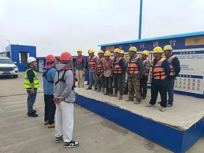 组织农民工参加海上施工安全专题培训,结合港航工程特点,讲解台风避险、消防逃生、高空作业防护等知识,并通过案例分析警示常见隐患。“安全带一定要高挂低用!”“脚手架必须验收合格再使用!”培训现场互动频繁,农民工纷纷表示将严守安全规范,坚决执行项目安全管理制度。安全班组还定期组织开展应急演练,确保农民工熟练掌握避险技能。