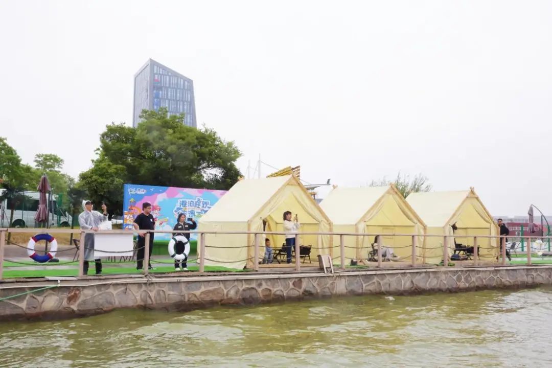 除了惊险刺激的水上项目,文旅集团还为游客们准备了丰富多彩的休闲体验。日月湖畔,一顶顶帐篷错落有致,游客们可以走进帐篷,稍作休息,静静感受湖畔的微风轻拂。莎士比亚国际商贸小镇里,一首首动听的歌曲悠扬起伏,游客们伴随歌声漫步在小镇上,感受各个场馆的异域风情,足不出户,便能购遍全球好物。