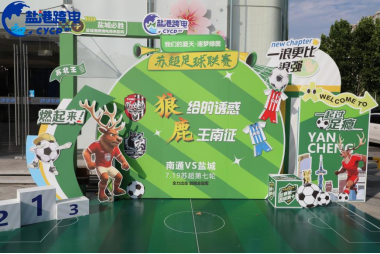 还未踏入宝龙店,苏超足球联赛的氛围已扑面而来——门店外,“狼的诱惑”“鹿王南征”等赛事主题美陈惊艳亮相,南通VS盐城的对战张力直接拉满。足球、球员卡通形象与创意标语巧妙融合,提前为球迷打造打卡胜地,赛事未开,打卡热情已挡不住!