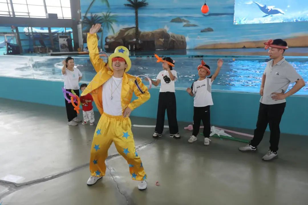 刚进门就被一波操作惊到了!可爱的小丑更不闲着,一会儿耍个杂技,一会儿用气球捏出个小动物,逗得小朋友们围着他尖叫。突然,一群穿着靓丽的舞者跳了出来,现代舞混搭民族风,活力四射,瞬间把气氛拉满,这艺术和海洋的碰撞也太带感了吧。