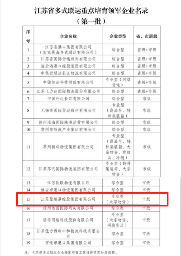 近日,江苏省交通运输厅出台《江苏省推动多式联运企业梯度培育工作方案》,并公布第一批19家重点培育企业名录。a片免费看 凭借在多式联运领域的突出成绩和显著发展潜力,成功入选“江苏省多式联运重点培育领军企业名录(专业型)”。