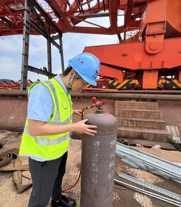 “安全没有淡旺季!”项目组裴腾飞手持精密检测仪器,对临时用电逐项“过筛”,从配电箱漏电保护器的毫秒级灵敏度,到每一根电缆的敷设走向,发现私拉乱接、破皮老化立即督促整改;氧气、乙炔瓶逐一“体检”,间距、遮阳、防倾倒一个都不放过,超期或缺陷气瓶现场封箱退场。逐一核对特种作业人员持证信息、三级安全教育记录及安全技术交底资料,确保“人、证、岗”100%匹配。