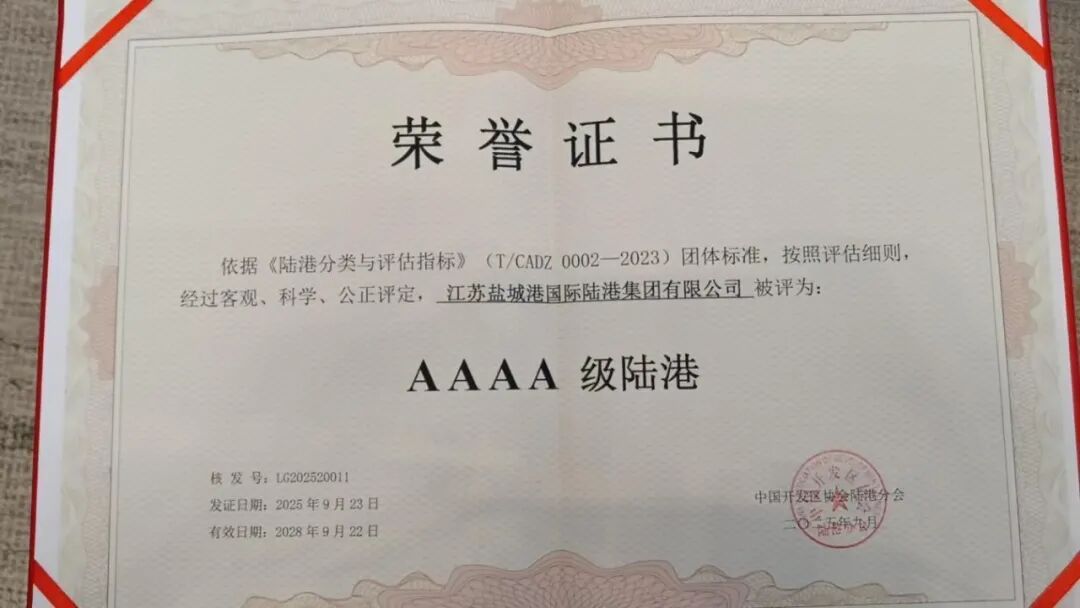 9月23日,“2025欧亚经济论坛暨中国陆港与物流枢纽发展会议”在西安举行,陆港集团凭借在多式联运领域的运营能力,成功通过中国开发区协会的严格评审,被正式授予“4A级多式联运企业”荣誉称号。