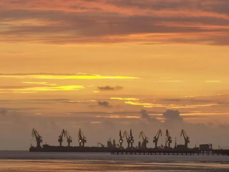 初阳浸染的码头上