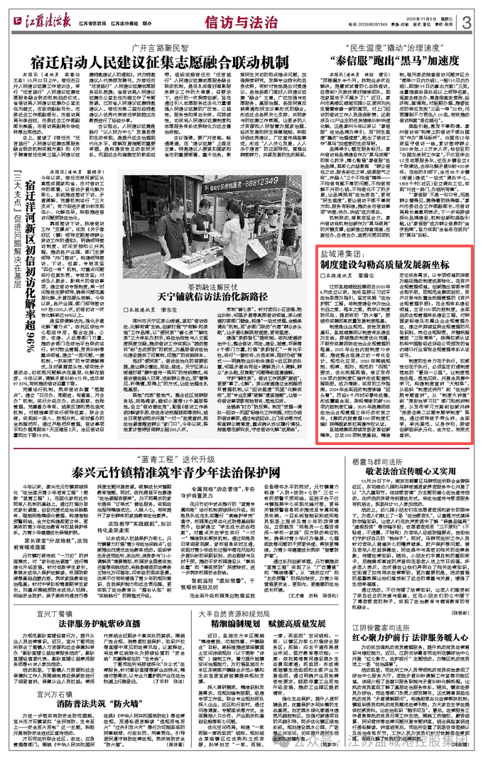 江苏a片免费看控股集团自2020年6月成立以来,始终坚持以习近平法治思想为指引,坚定实施“法治护航”工程,将制度建设作为治企长远之策、根本之策,筑牢以制度防风险、提质效的“防火墙”,持续夯实集团高质量发展制度根基。