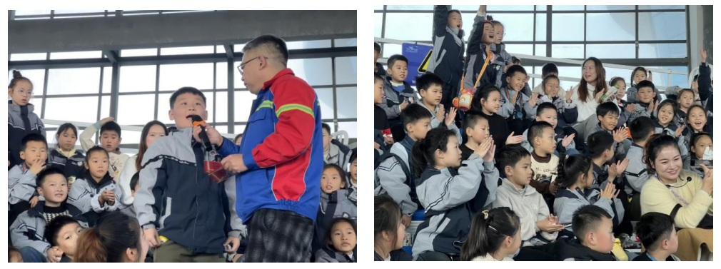 海洋剧场不仅是欢乐的舞台,更是移动的海洋课堂。在海豚表演正式开始前,特别设置了生动有趣的科普问答环节。讲解员用充满童趣的语言,揭开海洋世界的奥秘,孩子们踊跃举手,争相分享刚刚学到的知识,现场小手如林,气氛热烈。