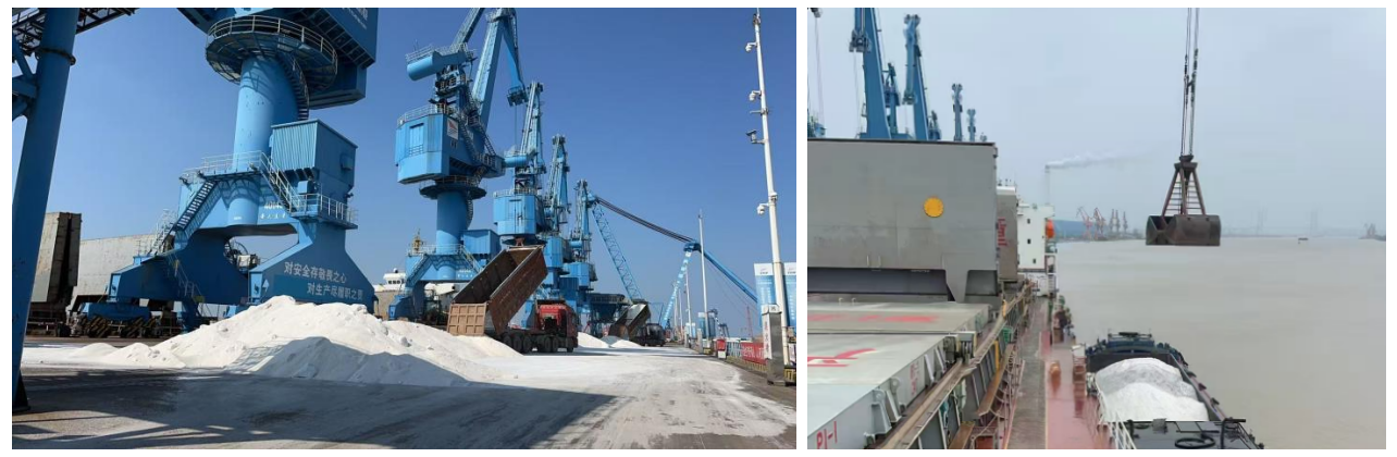 苏盐井神作为苏盐集团控股子公司,年产销食用盐、工业盐等超过800万吨,是响水港区2025年“一全一重两抢”揽货专项行动中新开发的海河联运重点客户。11月份,苏盐井神已抵港及预报靠泊响水港的船舶包括4条海轮和48条内河船,总装卸量首次突破单月10万吨。