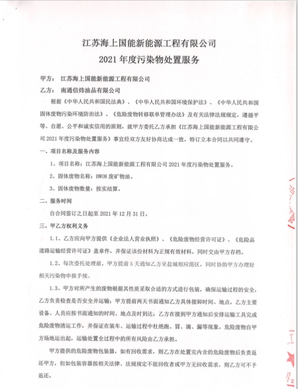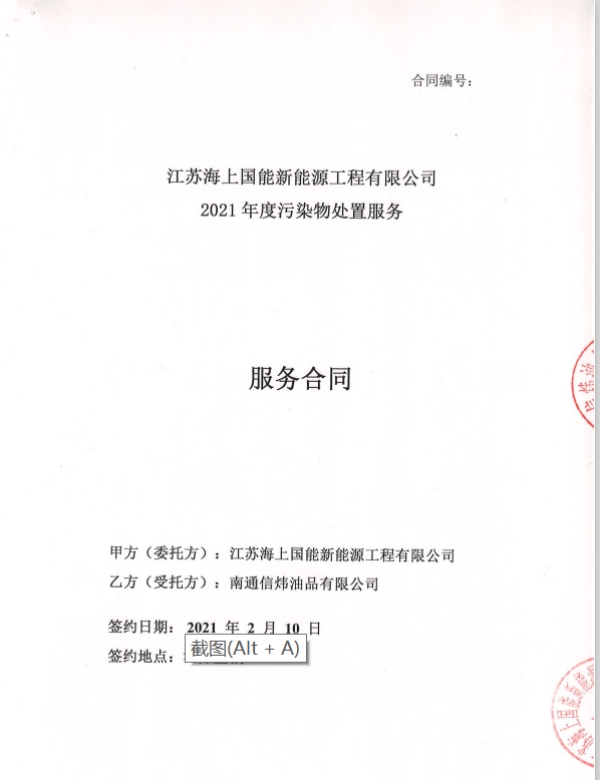 我司已与大丰海港港口有限责任公司、江苏射阳港港口集团有限公司两家港口单位签订了污染清除协议;与盐城国丰海上风电有限公司等海上风电建设单位签订了海上溢油应急待命服务合同;与华通船务、浙江海运集团、河北海畅船舶技术服务有限公司等多家船务代理公司及船舶运营单位签订了船舶污染清除协议;与来往盐城各大港口的20多艘零散船舶签订了船舶污染清除协议。