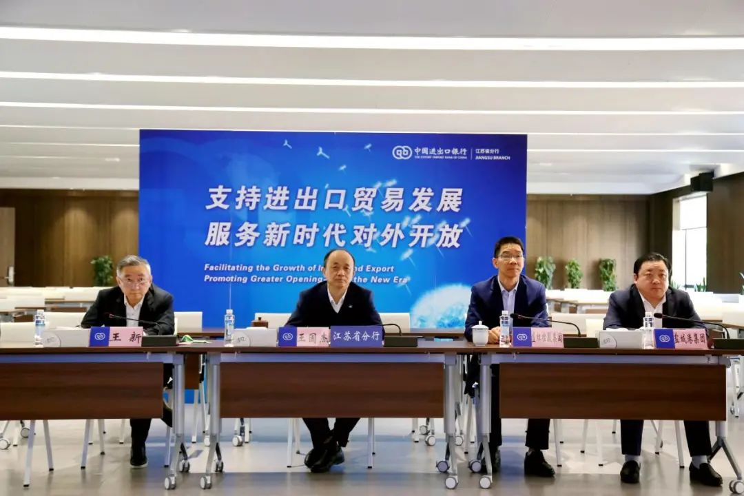 为进一步服务支持第五届进博会,充分发挥政策性金融逆周期跨周期稳经济大盘作用,推动外贸外资高质量发展,11月7日,中国进出口银行支持长三角地区外贸外资高质量发展银企座谈会在北京举行。中国进出口银行党委副书记、副董事长、行长任生俊,中国进出口银行董事会秘书蒋鞠华等在主会场出席会议。集团党委书记、董事长周正雄应邀在南京分会场出席会议并作交流发言。