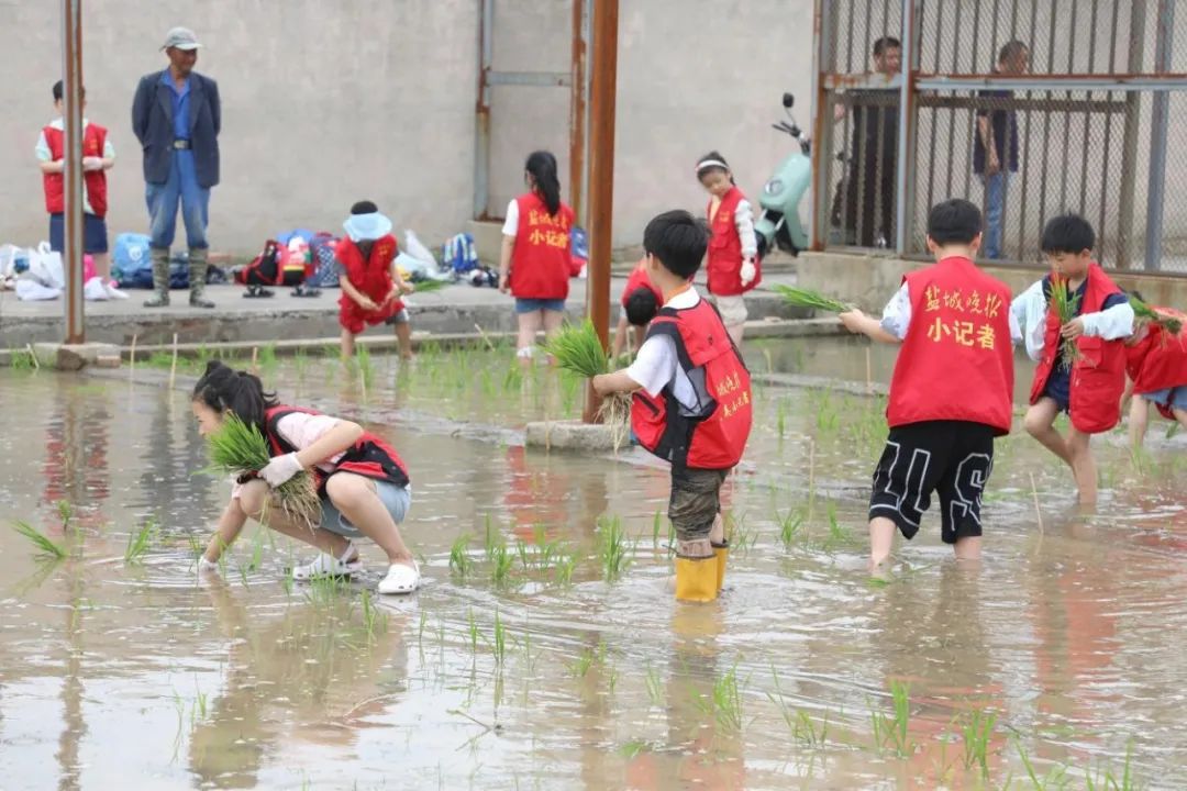 在华丰种业种植区内,稻子长在田里的身姿很好看,细细长长,看起来柔顺又光滑,巨大的播种机将一棵棵稻苗井井有条的插在稻田里……讲解员向同学们讲解了传统人工播种与现代大型机器播种的区别,也讲解了杂交水稻的选种、育种等流程,随后同学们来到稻田插下一棵棵稻苗,用实际行动体会到播种插秧的不易。