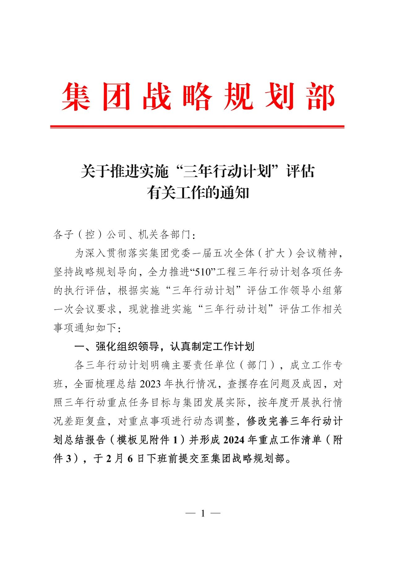 2024年是集团全面完成“十四五”规划目标任务的关键之年,为深入贯彻集团党委一届五次全体(扩大)会议精神,在三年行动计划上突出落地见效,以三年计划的完成保证“十四五”各项目标任务如期实现。“三年行动计划”评估工作领导小组办公室紧紧围绕集团三步走战略发展总体要求,完善“专班化推进+项目化实施”运作方式,做好阶段性评估,常态化督查,扎实推进“510”工程等三年行动计划各项工作走深走实。