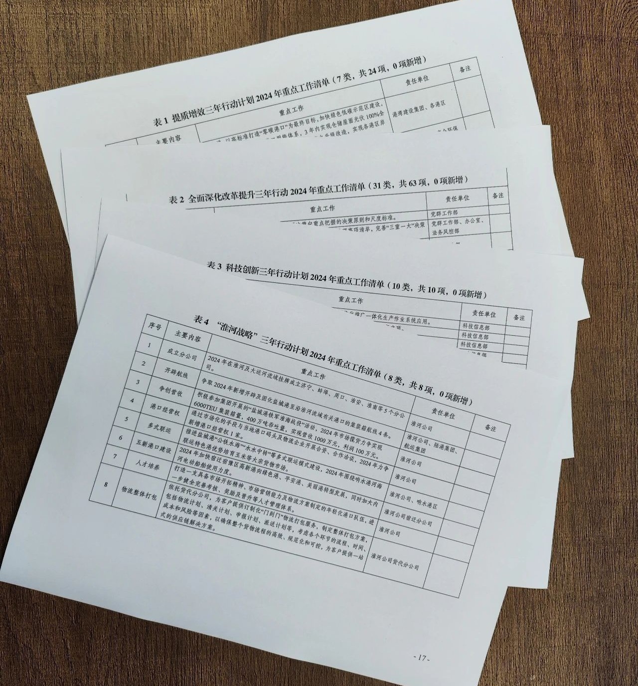 3月以来,领导小组办公室督促各责任单位明确完善2024年重点工作清单,坚持以年度任务的完成保证三年计划的落实,由工作领导小组办公室牵头,分类立项、分类实施、分级负责,通过定目标、定措施、定时限、定责任、定效果,逐项逐条抓推进、抓落实。形成2024年重点工作清单及未完成事项清单,其中:17项行动计划共计包含308项重点事项,涉及原计划269项,原计划以外结合实际新增39项,未完成事项清单共计13项,构建起“任务-交办-落实-跟踪-反馈-上报”的工作链条,形成闭环管理。