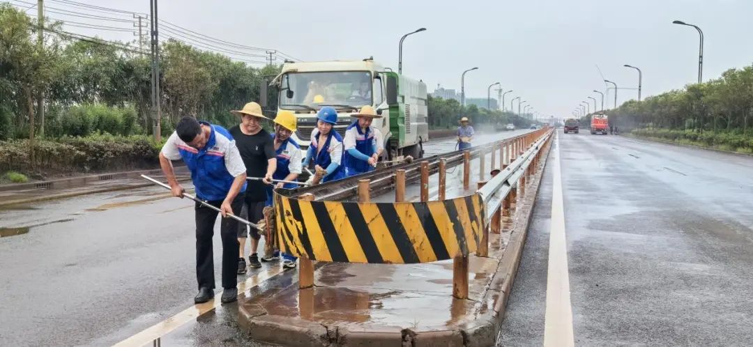 在港区的道路上,队员们顶着烈日,清理着道路护栏和杂物垃圾。他们用“严真细实快”的工作作风,时刻维护着港容港貌的“高颜值”。
