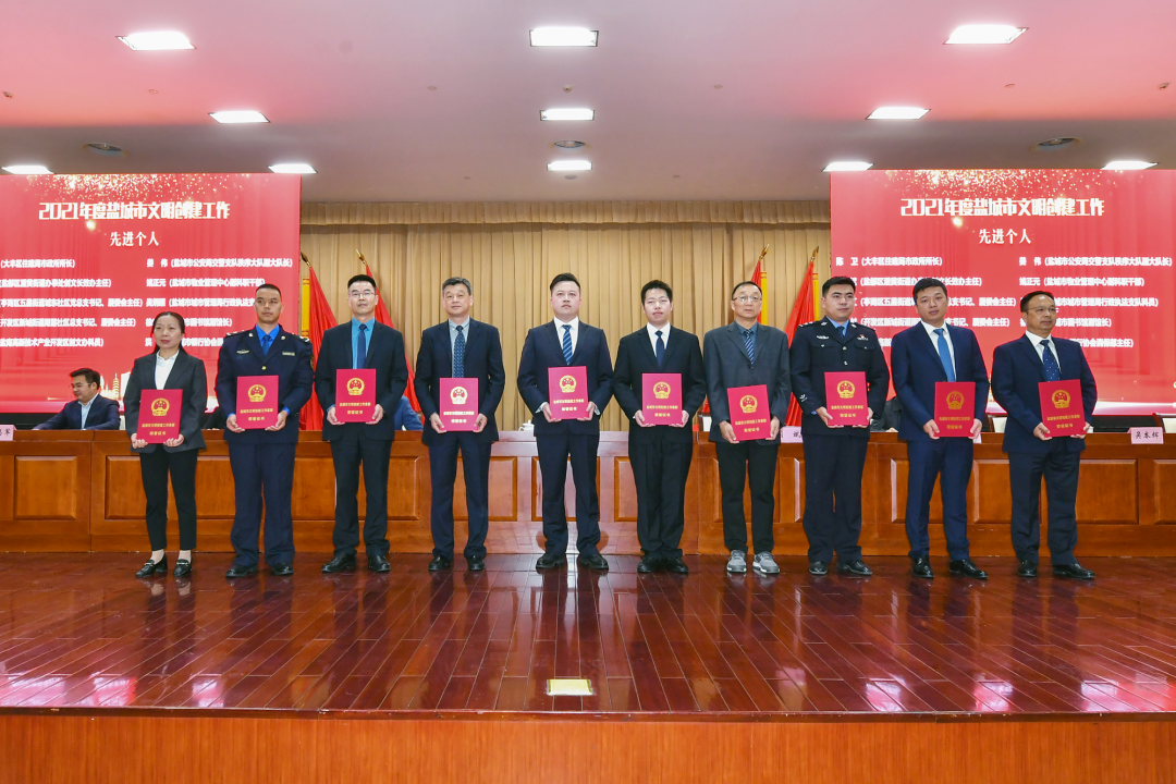 会上印发了《关于表彰2021年度盐城市文明创建工作先进集体和先进个人的决定》,并为先进集体和先进个人代表颁奖,还通报了近期文明城市创建工作模拟测评情况。亭湖区、东台市、阜宁县、市公安局、市住建局、市城管局作交流发言。