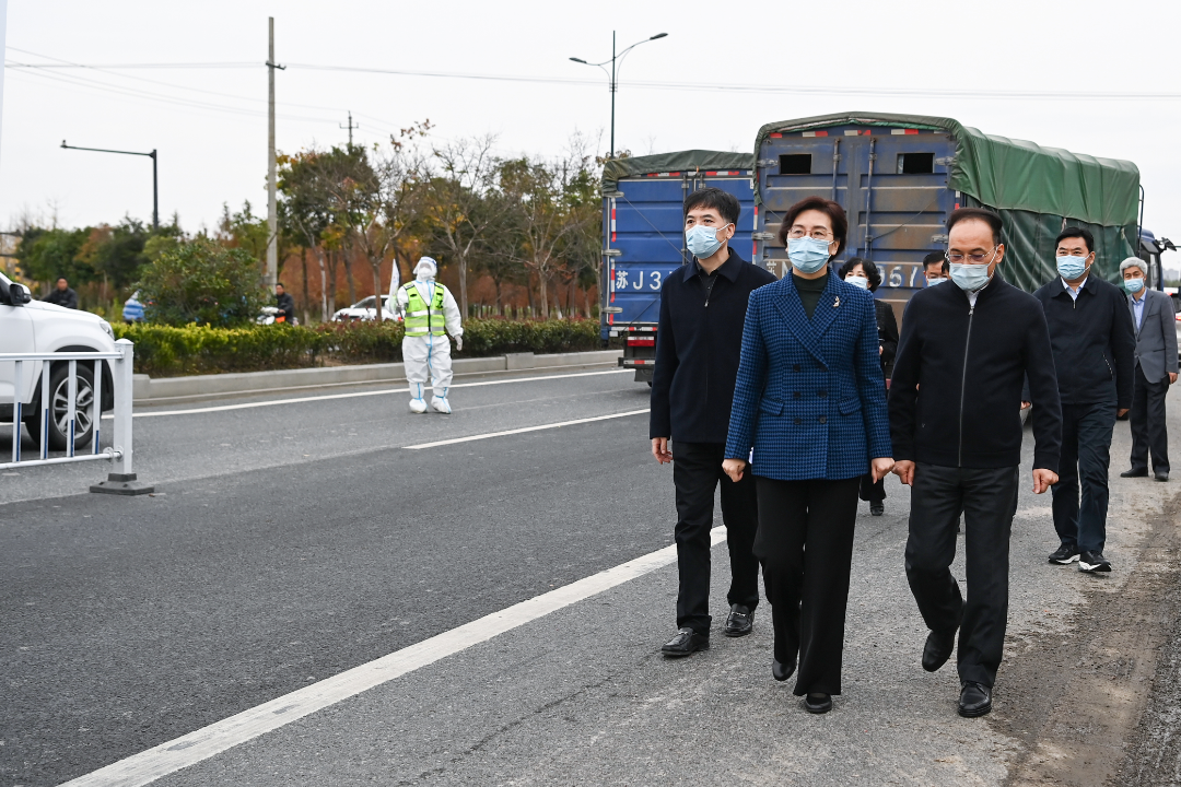 11月21日下午,市委书记徐缨以“四不两直”方式检查疫情防控工作。她强调,要深刻领悟“两个确立”的决定性意义,完整、准确、全面贯彻落实党中央决策部署,按照省疫情防控工作领导小组会议最新要求,深刻认识“三个坚定不移”是做好疫情防控工作的前提和基本原则,坚持问题导向,补齐短板弱项,不折不扣、科学精准把第九版防控方案和进一步优化防控工作的二十条措施落实到位,牢牢守住不发生规模性疫情的底线,最大程度保护人民生命安全和身体健康,最大限度减少疫情对经济社会发展的影响。