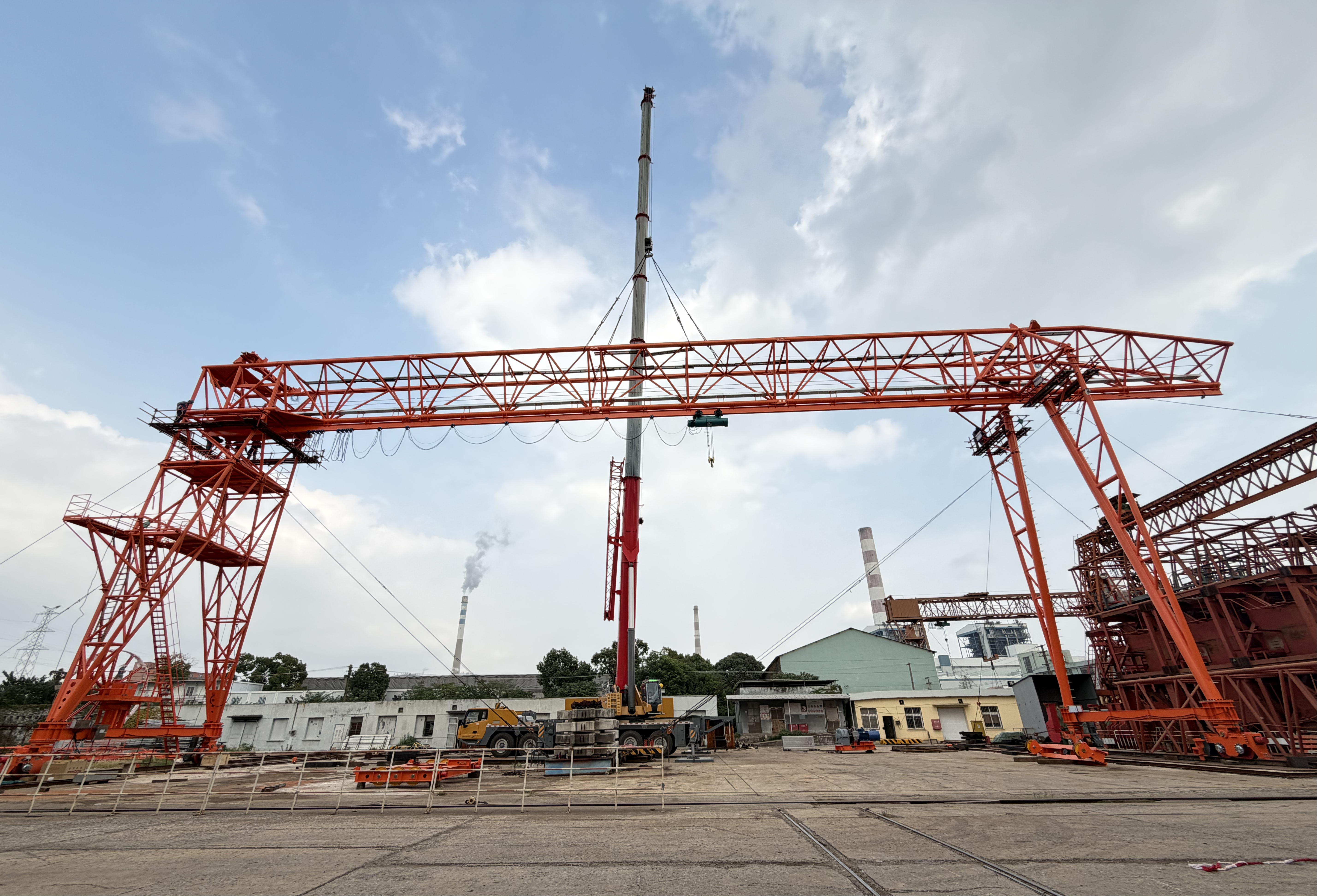 从盛夏到金秋,历经百日奋战。11月5日上午,公司吴泾车间传迎来喜讯——首台40吨级龙门吊顺利通过型式试验。这不仅是公司在大型门式起重设备制造路上的一次重要跨越,更为公司“十四五”收官之年实现技术领域新突破打下坚实基础。 载荷试验中,龙门吊顺利通过40吨动载试验与50吨静载试验,运行平稳、性能可靠,整体结构稳定,测试数据优异,充分验证了该类型起重机在重载工况下的优良品质。 该龙门吊由公司自主研制,采用桁架式单梁门式结构,主要由主梁、刚性腿、柔性腿、行走机构及起重小车等部件组成,跨度为42米,额定起重量为40吨,起升高度约15米,总重量约90吨。 在生产过程中,面对“大吨位构件焊接变形控制难度大、轨道安装精度要求高、多系统协同作业复杂”等一系列挑战,项目成员创新采用了“激光校准”的基础施工工艺,并结合“模块化预装+毫米级对接”的立装质量控制模式。安装现场,轨道直线度误差控制在±2毫米以内,轨距偏差锁定在5毫米以内,立装场地进行了承载力复核与水平度精调。针对主梁拼接这一关键工序,团队运用激光跟踪仪进行验证,最终实现大跨度钢结构的“毫米级”高精度合拢。 该型门式起重机的成功交付不仅标志着公司在大吨位起重设备制造领域取得了关键技术突破,更在攻坚中积累了“高强度钢轻量化设计、超声波探伤100%合格率、激光校准轨道铺设”等关键成套经验,为后续同类装备的批量化制造奠定了基础。 |