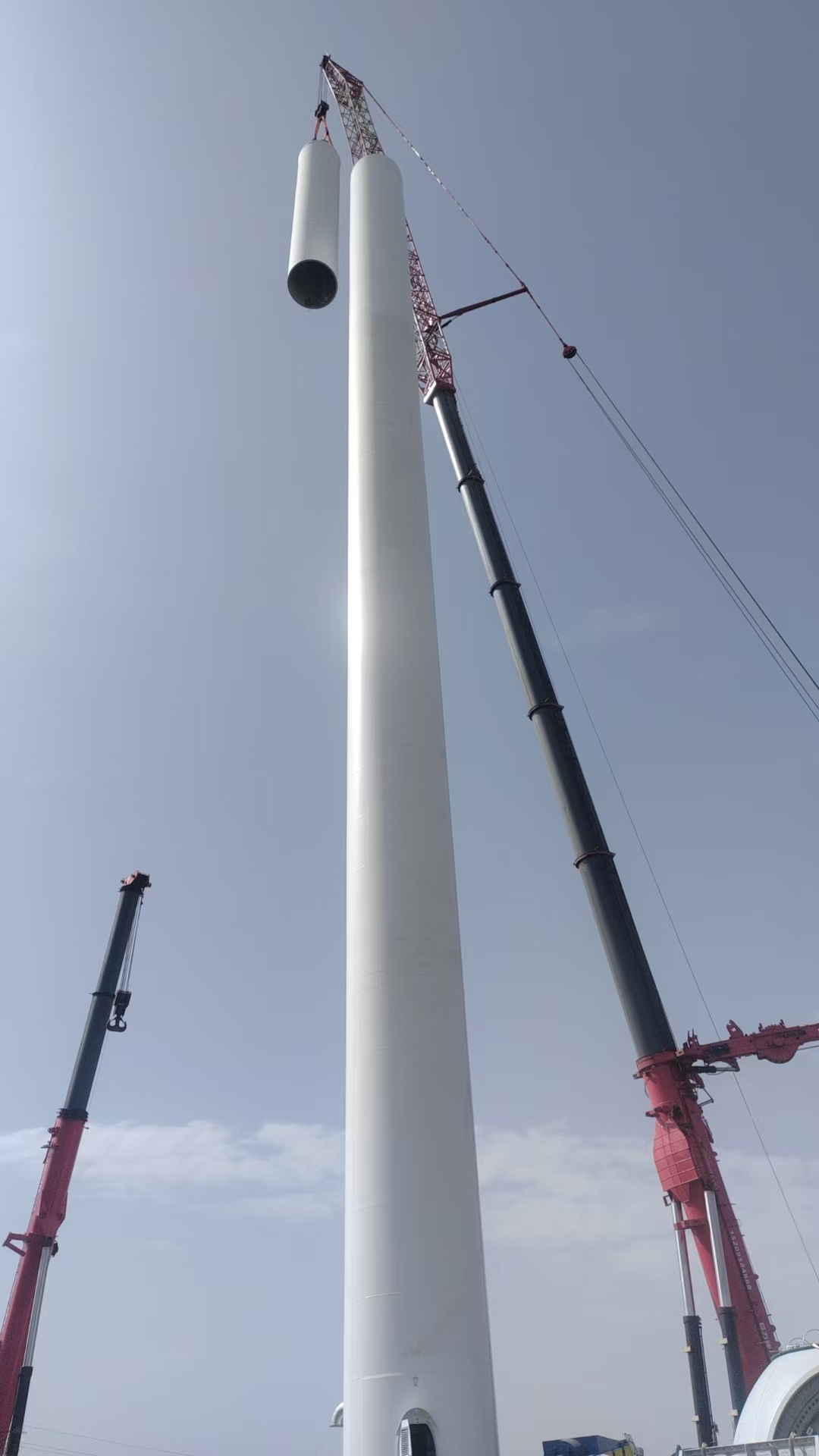随着最后一支风电塔筒安装就位,由公司承制的定西市“十四五”第二批通渭县10万千瓦集中式风电项目16台塔筒完成全部风机吊装,为项目全容量并网奠定坚实基础。 该项目位于海拔2300—2500米的通渭县马营—榜罗山脊地带,单机容量6.25 MW,塔筒为五段式结构,最大直径5米、总高116.32米,单台总重约305 t。 自2024年11月底,项目开工以来,项目党员突击队克服极端天气、运输、资源集成等重重困难,不断推进项目建设重要节点:2025年1月17日第一套塔筒首发,到2025年9月2日16台塔筒全部吊装完毕,按期履约完成了80段塔筒的交付工作。 此项目为甘肃省列重大建设项目,项目建成后,年可实现发电量19000万千瓦时、发电产值5848.2万元,同时有效改善提升项目区域道路等基础设施,并通过吸纳就地务工,进一步拓宽群众增收渠道,为通渭打造陇中‘绿电走廊’作出了突出贡献! |