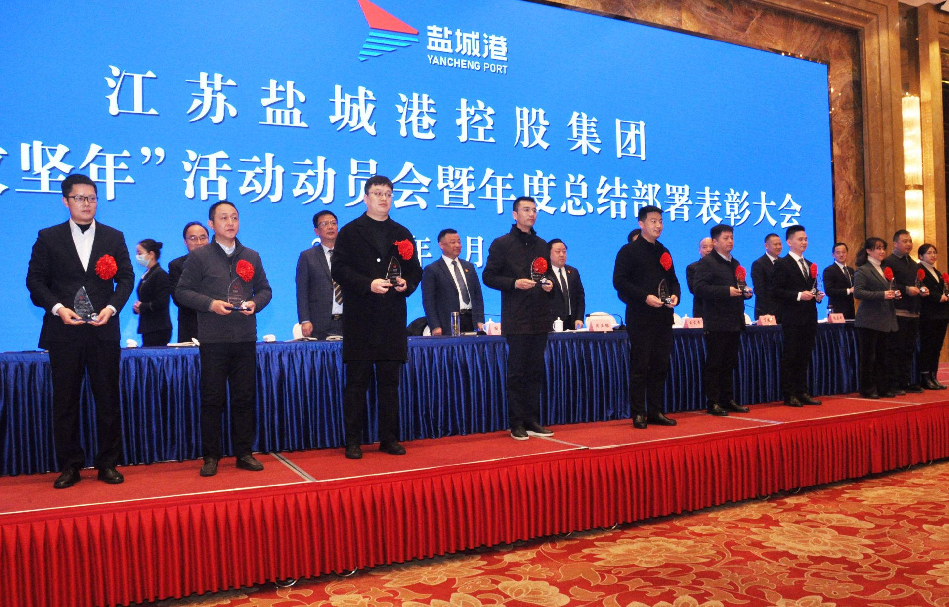 会议为2021年度集团受表彰的先进集体、先进个人、卓越工匠以及营销标兵代表进行了颁奖,大丰海港控股集团、滨海港开发集团、国际陆港集团、项目建设管理公司、集团企业管理部分别围绕主题作了表态发言。