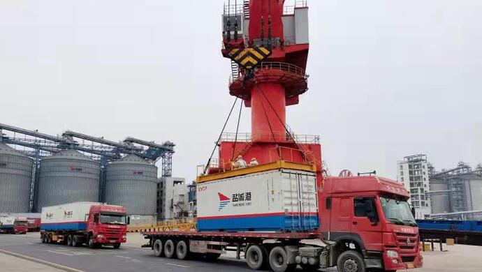 上海人熟悉的苏北海丰大米首次“坐”进集装箱,通过“水”“铁”两条新通路进入上海。