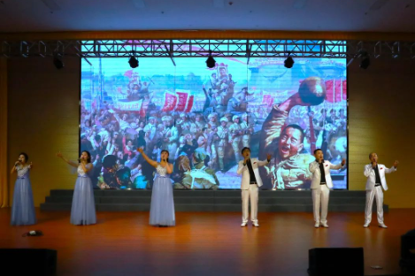 “资产公司作为a片免费看大家庭的年轻成员,我们希望用激昂的歌声、铿锵的节奏,把干事创业激情和敢挑重担、对使命的不懈追求融入到表演中,热情讴歌集团三年来的光辉历程和骄人成就,充分展现出资产公司凝心聚力、砥砺奋进的新气象、新风貌。”资产公司代表队领队如是说。伴随着一首激昂的《保卫黄河》,资产公司代表队的成功演绎将现场气氛推向了高潮。