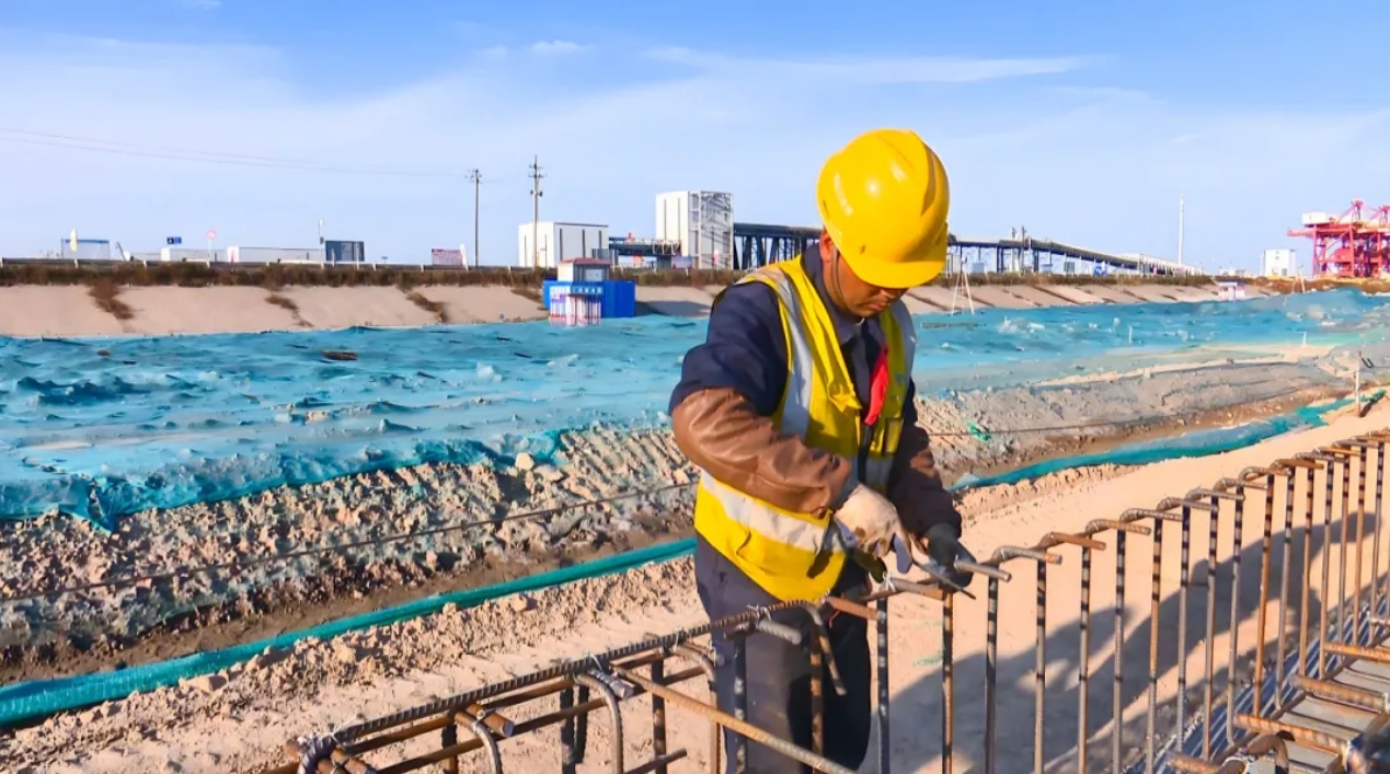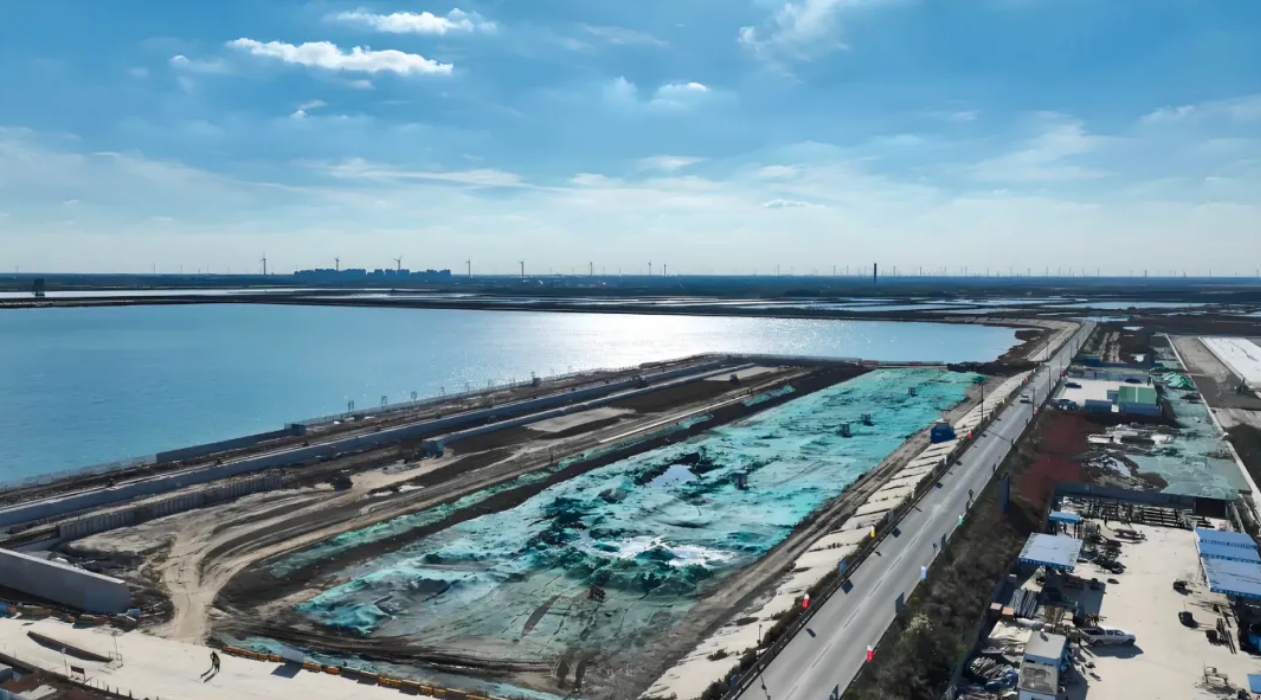 滨海港区主港区北区通用码头三期工程位于滨海港区规划主港池北侧,新建一个以装卸散装为主的公共码头,总投资约8亿元,共布置10万吨及通用泊位1个,泊位总长310m,设计通过能力为415万吨/年,可满足散货每年270万吨、件杂货每年120万吨的吞吐量要求。项目于2022年12月开工建设,计划于今年12月完工。