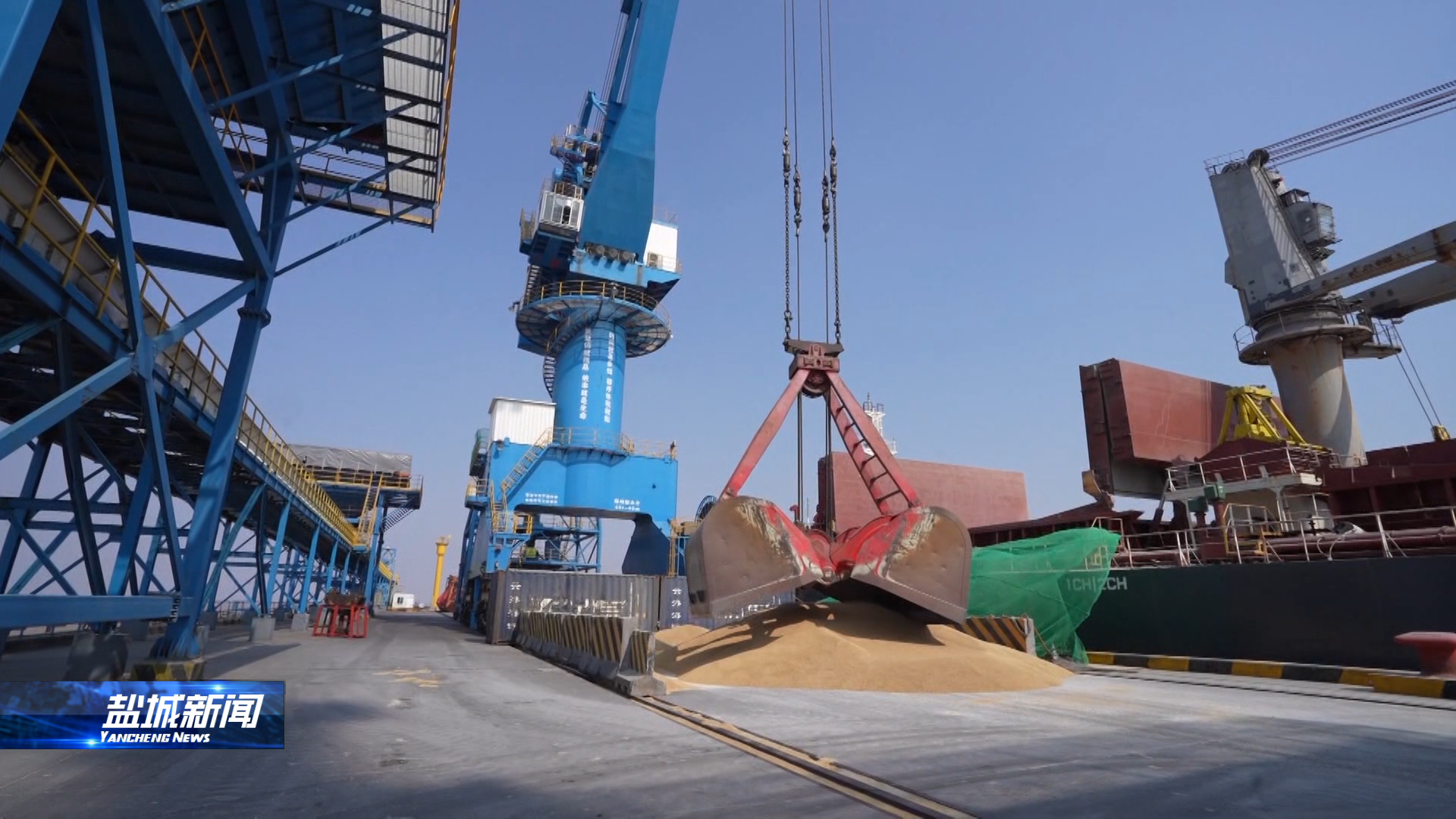 来到a片免费看大丰港区粮食码头,一艘装载着澳大利亚大麦的货船正在卸货。接下来,还将有来自巴西装载着6万吨大豆的货船排队进港。
