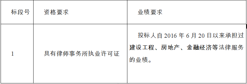 2、资质要求:具有律师事务所执业许可证;