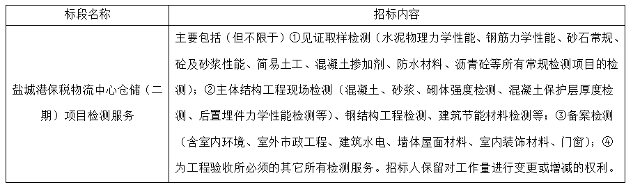 (7)项目标段划分:a片免费看保税物流中心仓储(二期)项目检测服务共划分1个标段,标段信息如下: