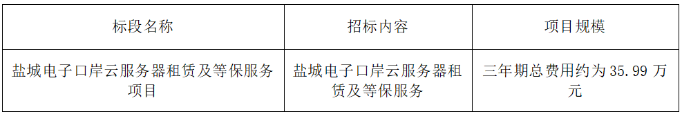 一、 盐城电子口岸有限公司 就盐城电子口岸云服务器租赁及等保服务项目进行公开招标,诚邀合格的投标人前来报名参加。