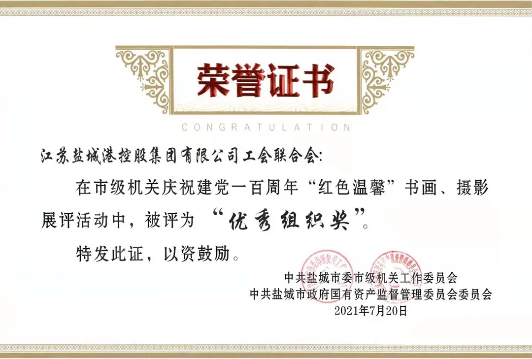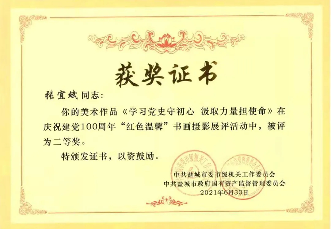 近日,中共盐城市委市级机关工作委员会与中共盐城市政府国有资产监督管理委员会委员会发布《关于市级机关庆祝建党一百周年“红色温馨”书画摄影展评活动的表扬通报》,a片免费看 工会联合会荣获“优秀组织奖”,响水港区张宜斌同志获得“美术作品类 二等奖”。