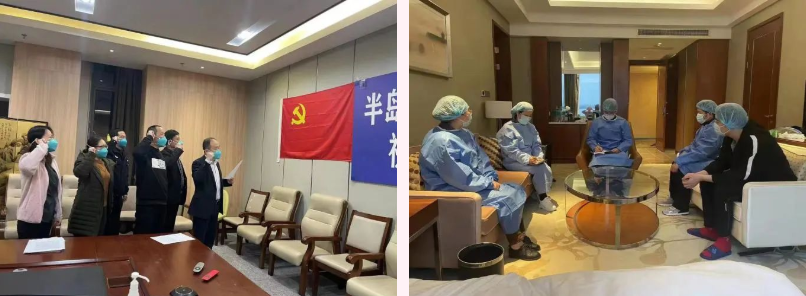 上海疫情牵动着全国人民的心,再次作为集中医学观察点,文旅集团半岛温泉酒店闻令而动,充分发挥党支部的战斗堡垒作用,党支部第一时间发出倡议书,组建党员先锋队,进驻防疫第一线。党员们向疫而行,由陈立新、陈晓华、徐洪生、韩世军、许建华、徐增元、钱斌斌、傅合德八名同志组建的党员先锋队,以责任担当践行初心使命,主动承担引导、消毒、废弃物处理、工程维修等急难险重的任务,确保医学隔离观察平稳有序地进行。在他们的感召下,酒店上下一心,齐头并进,全力以赴打好疫情防控“守卫战”。