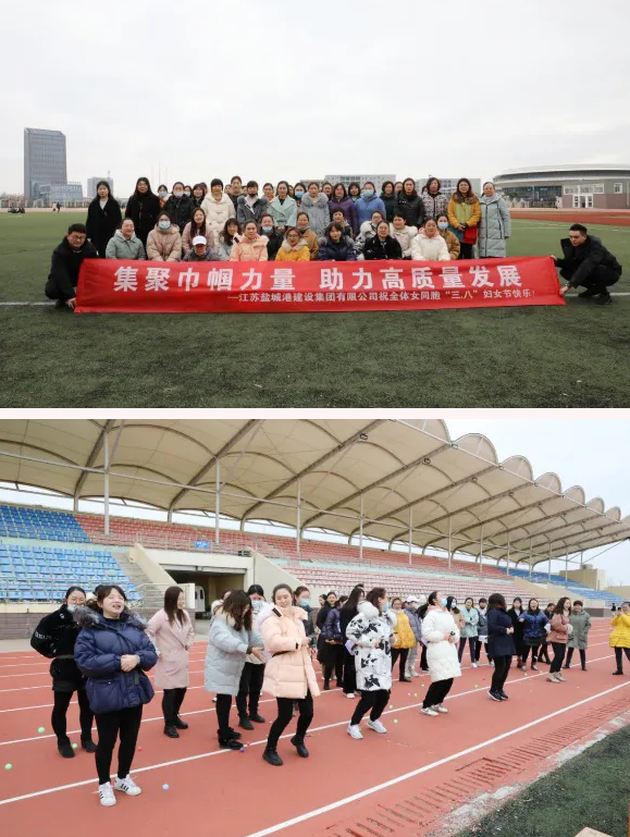 3月8日下午,集团工会在大丰港莎士比亚小镇举办“三八”节系列活动,来自集团各港区、板块的参赛选手身着代表各自单位颜色的队服,现场随机摇号互相组队参加了“两人三足”比赛。选手们斗志昂扬、角逐争先,拉拉队们欢呼呐喊,现场高潮不断,欢呼声一浪高过一浪,众人满心欢喜一片祥和。