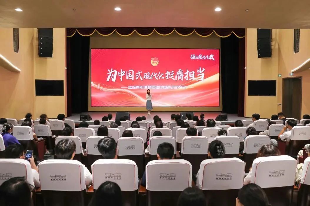 在线路第三站铁军剧场,5位来自不同领域的青年讲师为青年学员带来了一场内容丰富、形式多样的精神盛宴。江苏省金牌讲解员陈风亮老师深情讲述了“一块石头的故事”,以小见大,折射出新四军带领盐阜人民修筑海堤、抵御海潮的感人事迹;建湖县淮剧团青年演员夏诗雅老师分享了她的艺术成长历程以及淮剧创新表演方式,引导青年在艺术熏陶中感悟红色基因的深厚底蕴;青年志愿者马量则结合自身志愿服务经历,呼吁大家立足本职岗位,弘扬奉献精神,积极服务社会。来自水务公司和盐城机场的青年讲师也结合自身岗位分别做了分享。