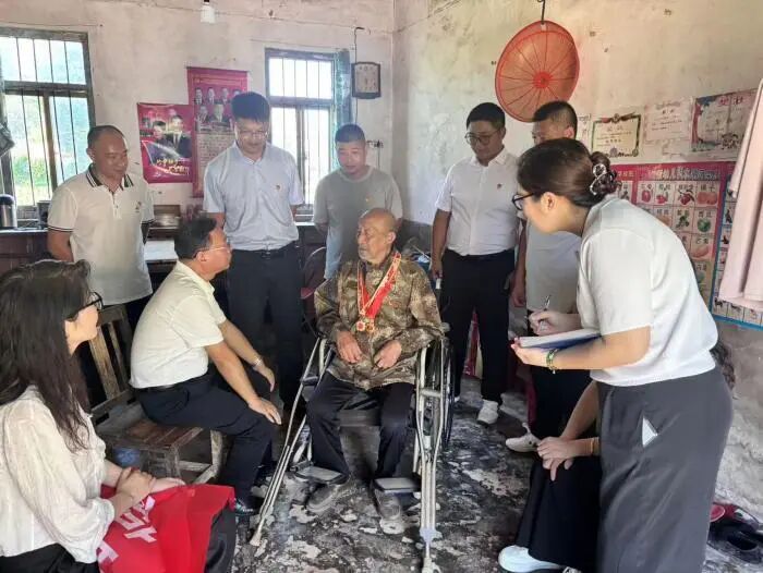 下午,全体党员前往93岁老兵周立忠家中开展走访活动。走进屋中,老人身着整洁旧军装、佩戴勋章,虽已年过九旬,却依旧精神矍铄、身姿挺拔,回忆起当年战斗经历时,原本平和的眼神瞬间闪烁出坚定光芒,仿佛重回烽火连天的岁月。“我是17岁当的兵,那时候条件苦啊,吃不饱、穿不暖,但大家心里都憋着一股劲,要把敌人赶出去!”老兵用朴实的语言,将大家带回那个艰苦卓绝的岁月,每个细节都饱含着对祖国的赤诚和热爱。当谈及曾参与的渡江战役时,老人更是打开了话匣子,从战前的紧张准备,到渡江时的惊险瞬间,再到战友间的相互扶持,将一段段惊心动魄的往事娓娓道来。党员同志们围坐在老人身边,听得格外专注,不时轻声追问细节、积极交流互动,大家被他们的英勇事迹和爱国精神所深深打动,更深刻理解了“英雄”二字的背后,是舍生忘死的担当,是刻在骨子里的爱国赤忱,更是激励后人奋勇前行的精神力量。