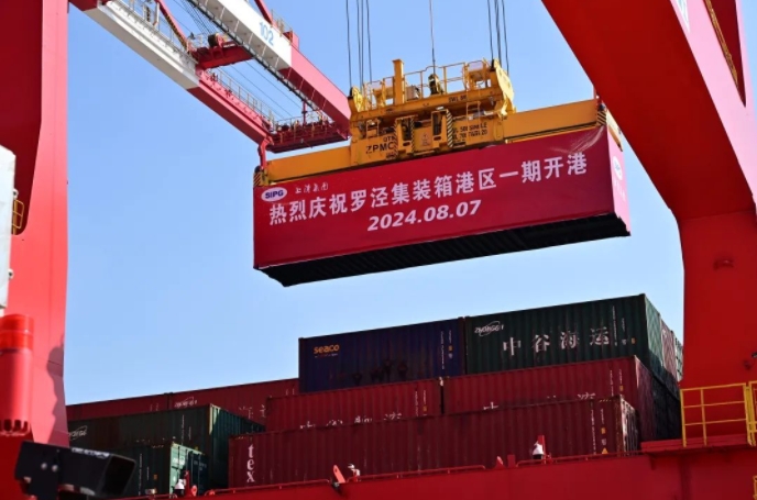 8月7日,上海国际航运中心罗泾集装箱港区一期开港活动在罗泾港区集装箱码头一期现场隆重举行。上海市副市长张小宏宣布上海国际航运中心罗泾集装箱港区一期正式开港。