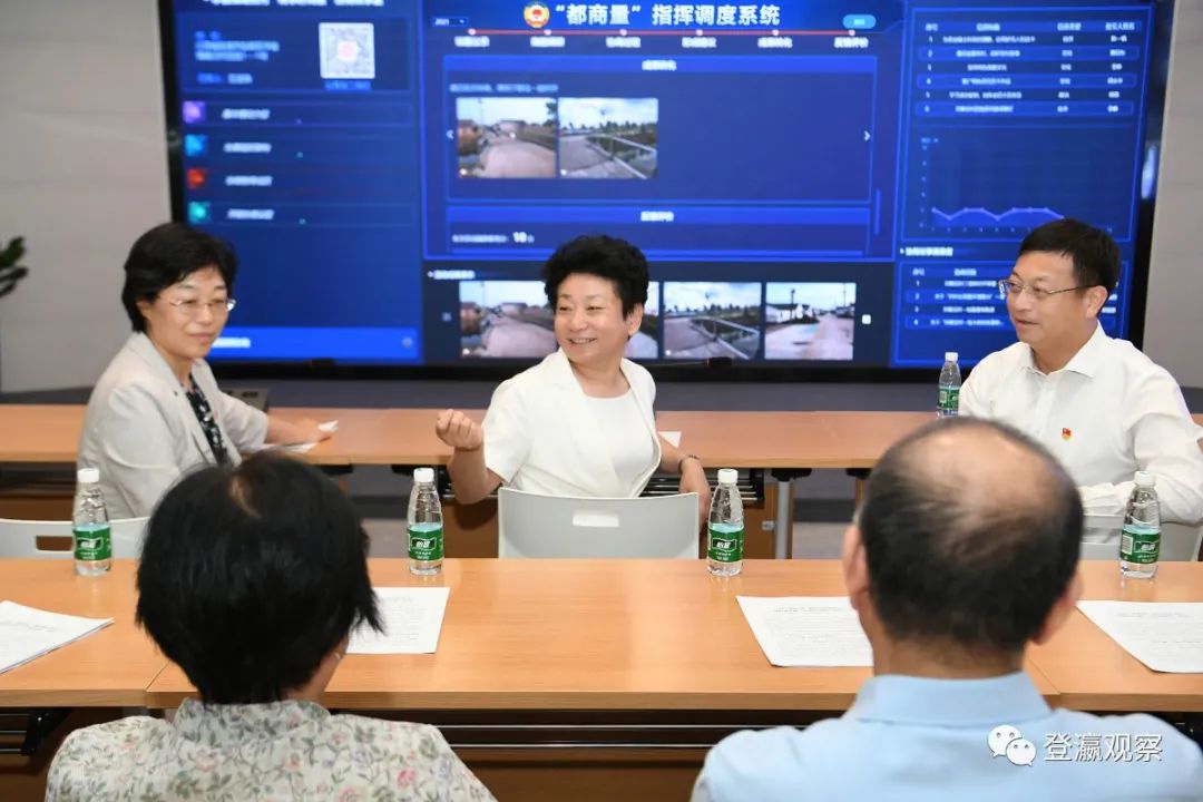 ▲黄莉新在盐都区政协“有事好商量”协商议事工作调度中心与市县政协委员代表深入交流