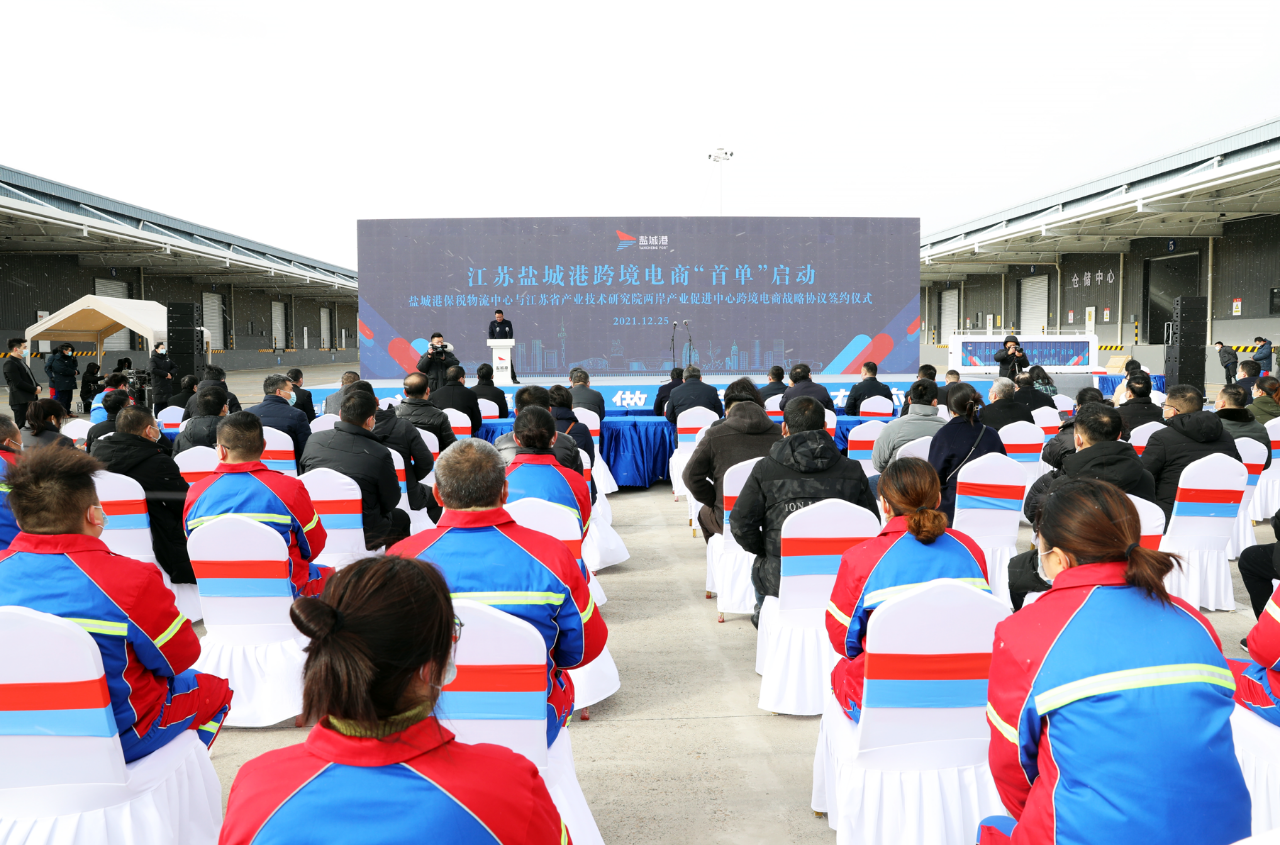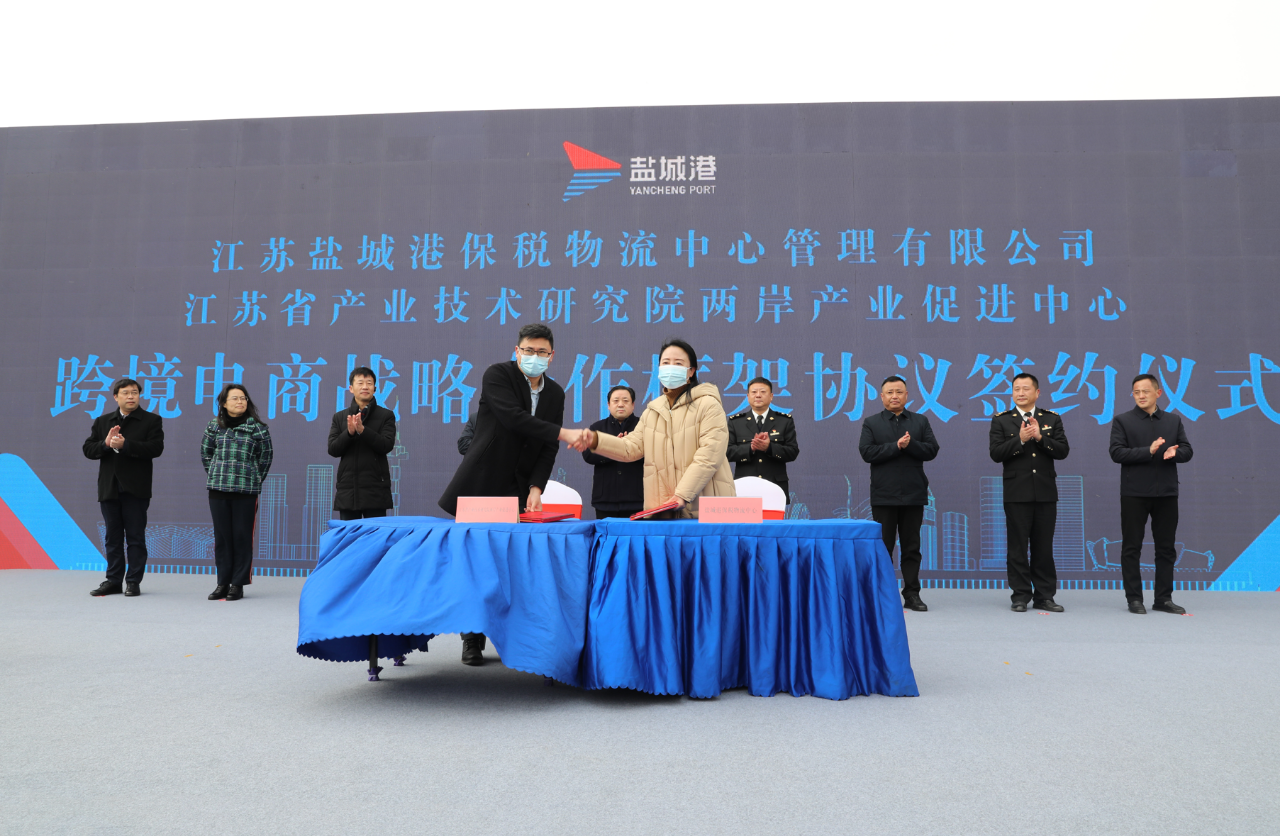 12月25日,江苏a片免费看跨境电商“首单”启动暨a片免费看保税物流中心与江苏省产业技术研究院两岸产业促进中心跨境电商战略协议签约仪式,在a片免费看保税物流中心隆重举行。集团党委书记、董事长、总经理周正雄,盐城海关副关长李健,市商务局副局长乔振,市国资委副主任成友贵,集团党委委员、纪委书记周旭东,集团总经理助理孙永峰以及大丰区相关部门负责同志出席启动仪式并鉴签。集团党委委员、董事、副总经理夏立新主持活动。
