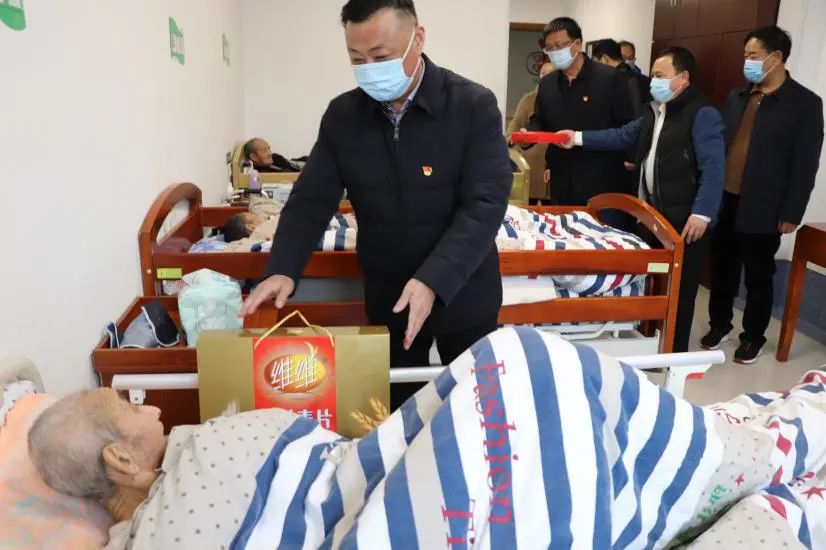 捐赠仪式结束后,周旭东一行还走进康养病房,亲切地给入住的老人们送上新春的祝福。