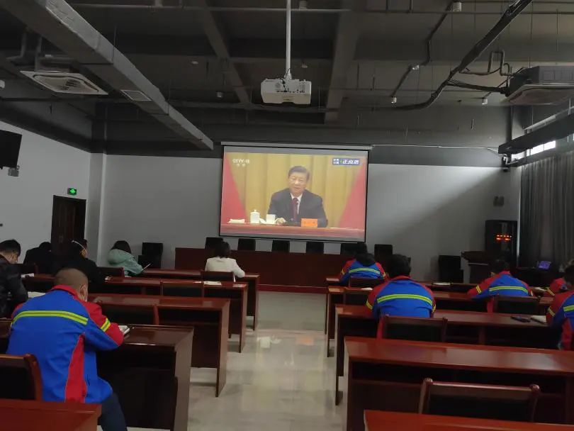 港口公司工作人员集中收看大会实况直播