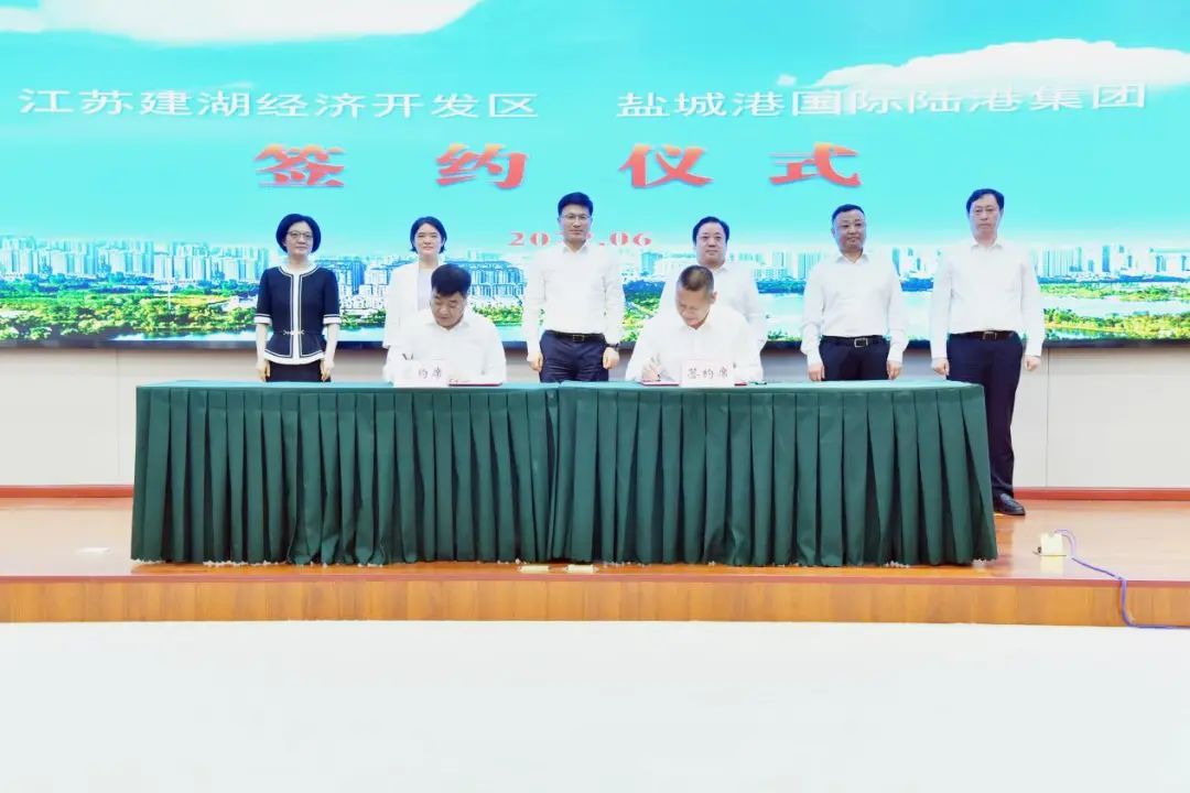6月29日,江苏建湖经济开发区与江苏a片免费看国际陆港集团合作签约仪式成功举行。建湖县委书记祁从峰,集团党委书记、董事长、总经理周正雄出席活动并分别致辞。建湖县委副书记、县长陈霞,建湖县委常委、组织部部长、开发区党工委书记孙红,建湖县委常委、县委办主任孙振宏,集团党委委员、纪委书记周旭东,集团党委委员、副总经理陈正华等参加。